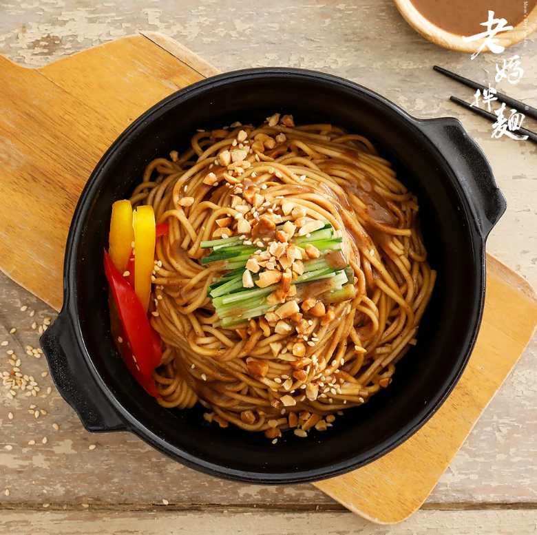 老媽拌麵特選香氣濃郁的芝麻醬純正0添加的黑胡椒粉與芝麻醬搭配,濃醇香氣又不膩口微嗆胡椒味,淋上濃郁特選芝麻醬,達到溫潤平衡